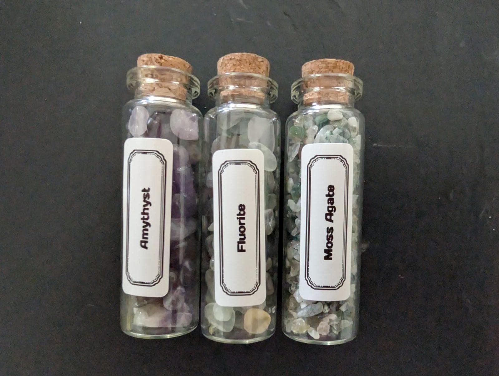 – Amethyst, Fluorite & Moss Agate crystals (for emotional stability and spiritual protection)